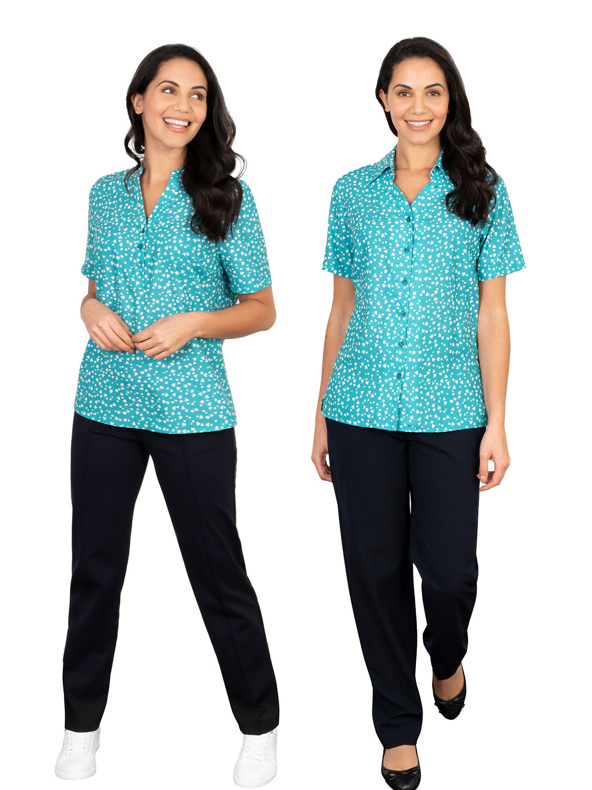 Orla printed soft touch crepe blouse, when teamed with the Bella popover top creates a professional uniformed look.