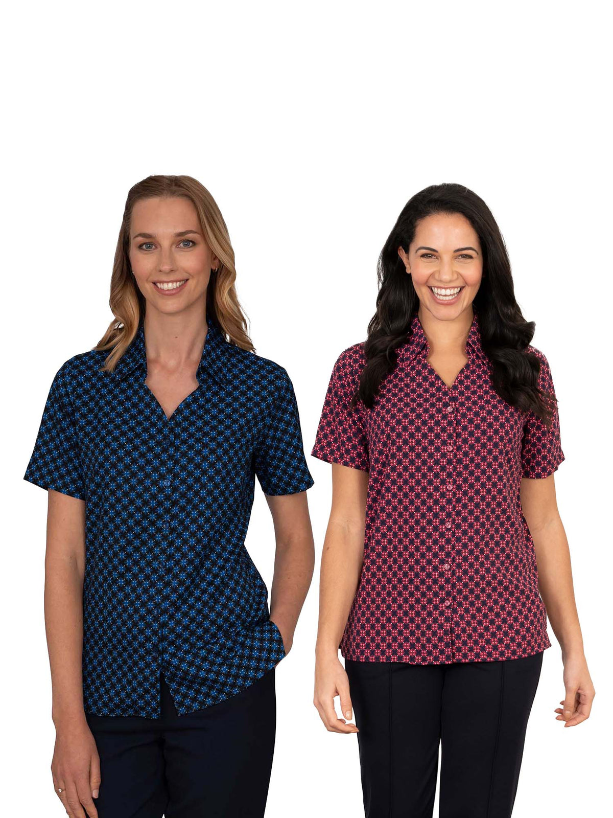 SARAH RED BUTTON DOWN SHORT SLEEVE