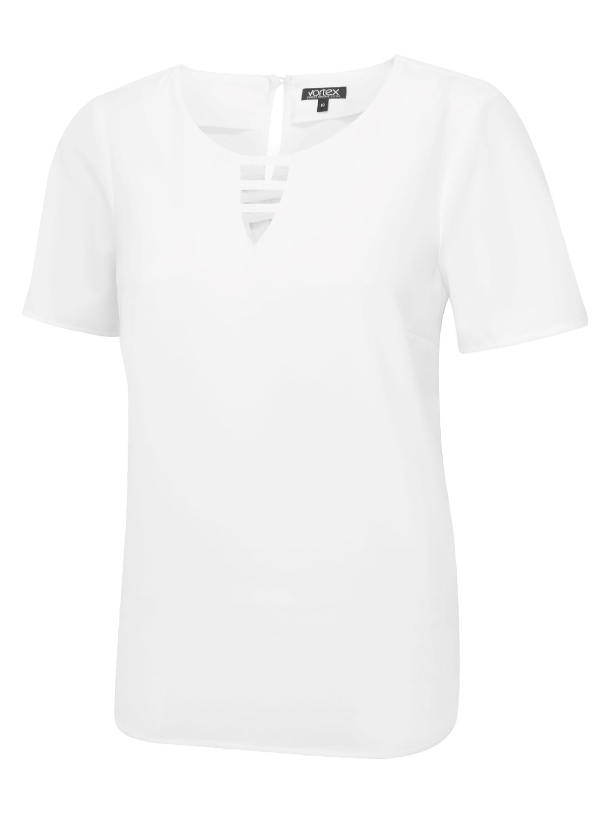 With a notched-neck detail, our short sleeve Lottie top is made from easy-care polyester with 5% stretch for comfort. Versatile and practical, it can be paired with many of our other blouses and tops.