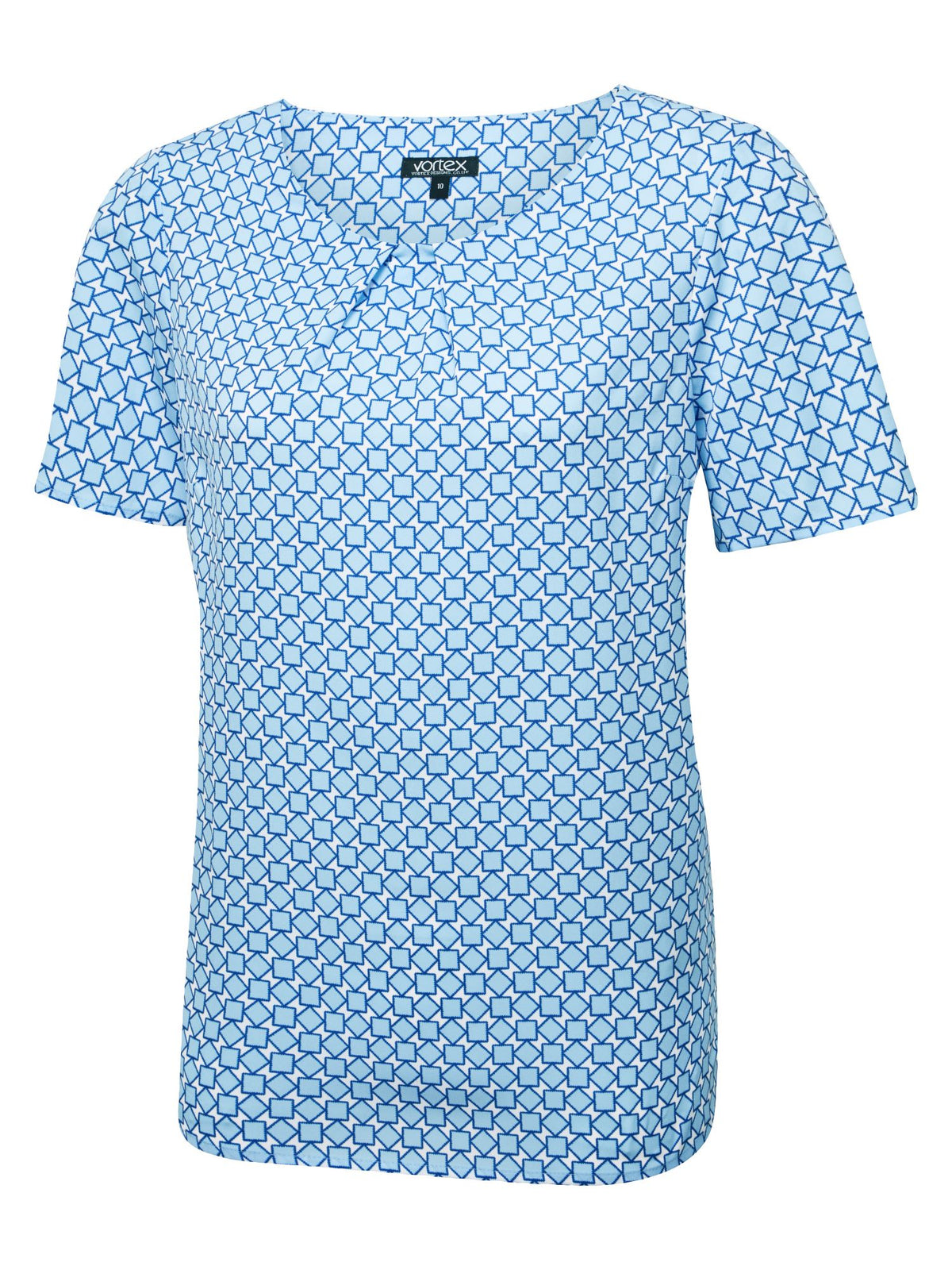 MOLLY SKY BLUE GEO PRINT TUCK NECK