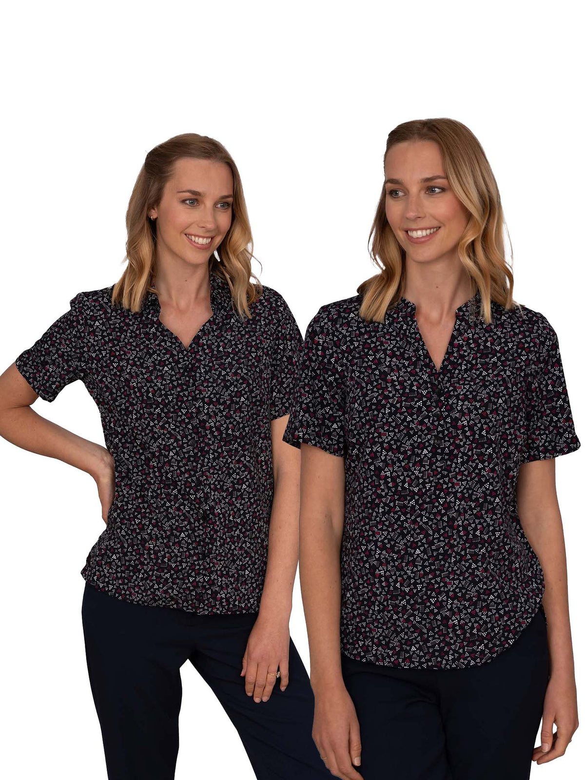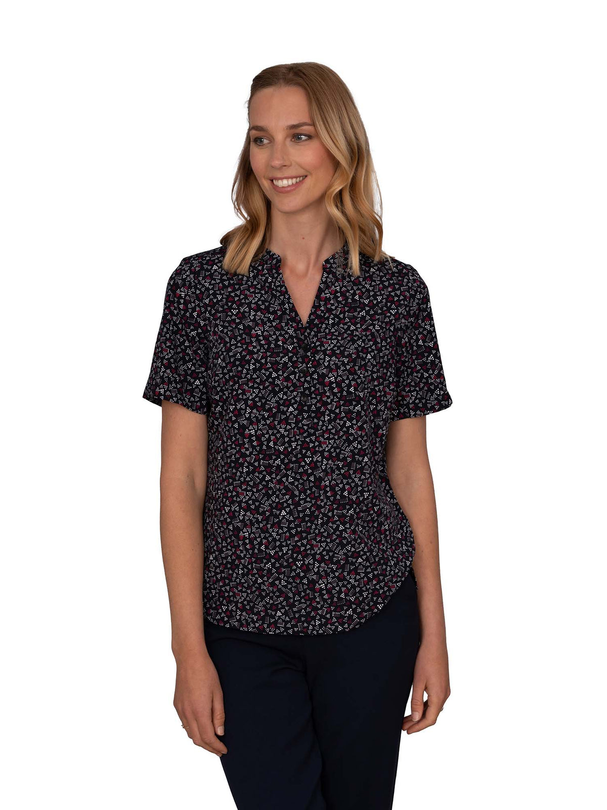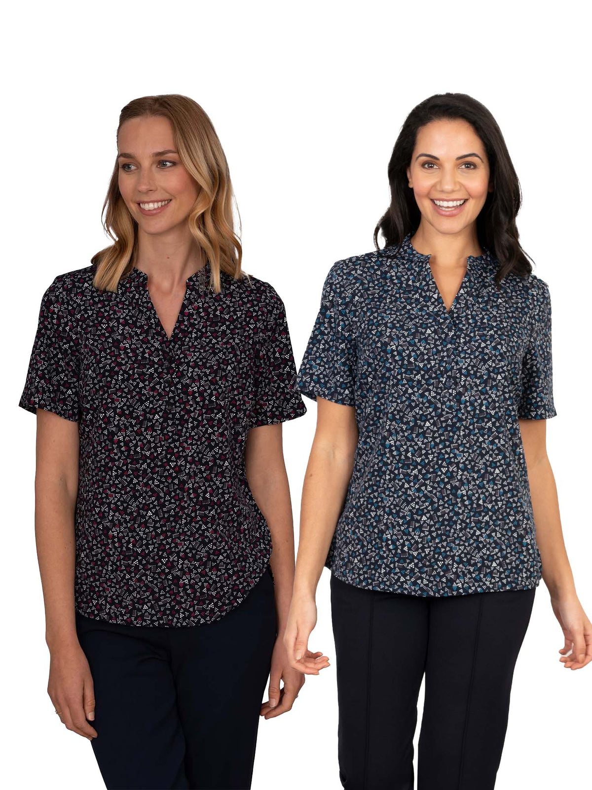 A Jewel Triangle print pop-over top in easy-care stretch crepe. Why not team this with Jenni in Navy/Jade, same print, same colour different style - offering more flexibility but still creating the essential corporate look everyone wants! A